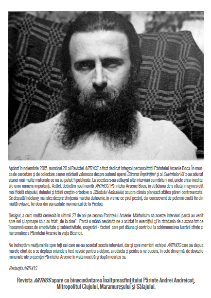 Revista ARTHOS NR. 22 -număr dedicat Ieromonahului Arsenie Boca Postat de BogdanDinca | mai 6, 2016 | Evenimente, Noutăţi, Slider | 0